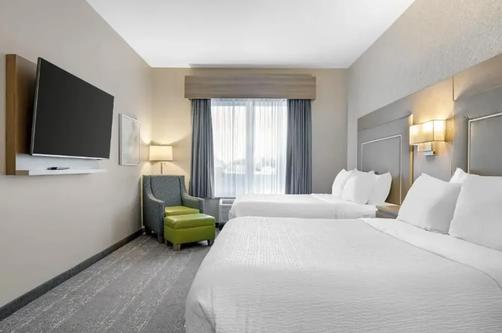 The Best Western Plus Dartmouth Hotel & Suites offers convenient access to key attractions along the Halifax waterfront while providing modern amenities for travelers. Located at 15 Spectacle Lake Drive in Dartmouth, just across from Halifax, this property features a complimentary breakfast known for its strong value among guests. On-site dining includes both a bar and a full-service restaurant, where meals have been praised for their quality. Guests also appreciate the fitness center and indoor swimming pool available on premises, making it ideal for short stays or extended visits. Free parking is included, ensuring easy vehicle storage during trips into nearby areas like Point Pleasant Park (8 kilometers away) or Maynard Lake Beach (4.6 kilometers). Family-friendly options include family rooms, and room service allows for added convenience without leaving the suite. At just 18 kilometers from Halifax Stanfield International Airport, it serves as a practical stopover point before heading out to explore local landmarks such as Pier 21 (7 kilometers distant) or Spindrift Brewing (only 1.4 kilometers away). Staff members consistently receive high praise for their professionalism and friendliness, contributing to an overall positive experience.